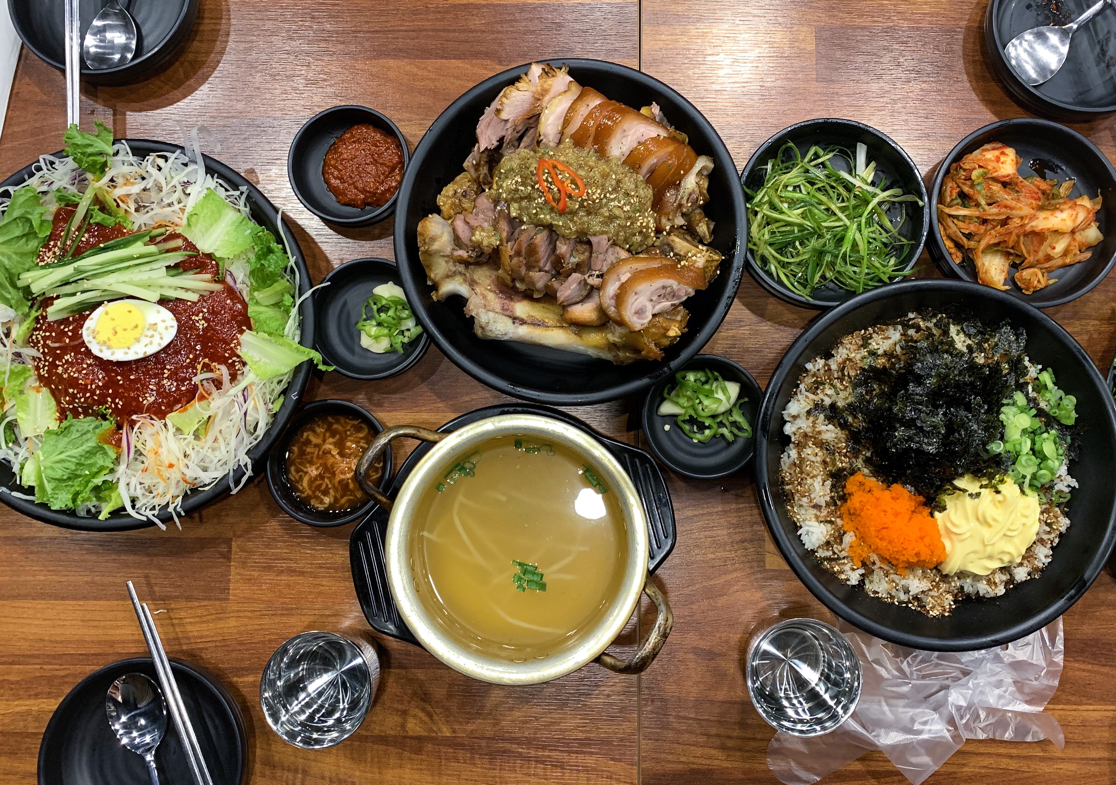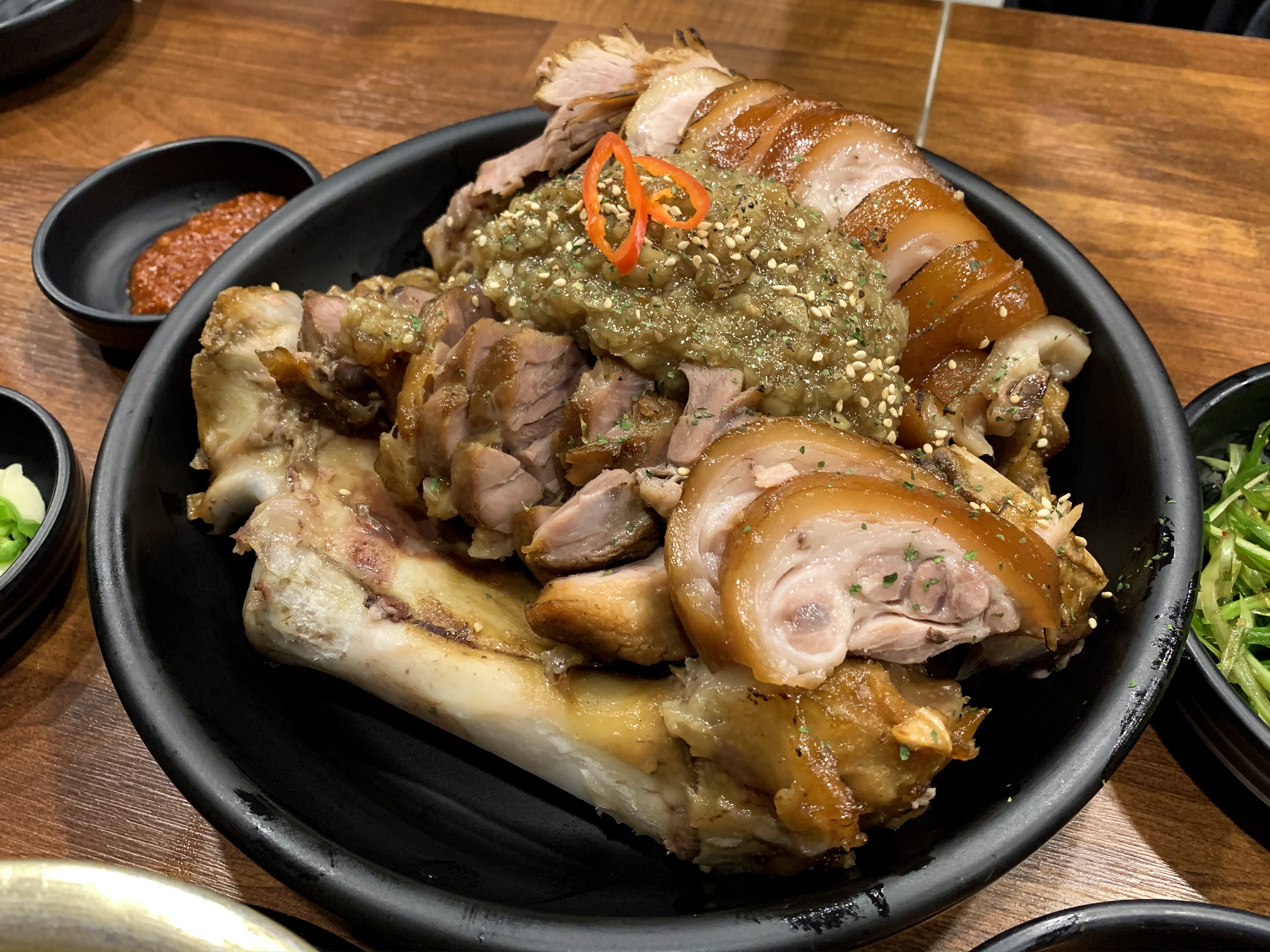 最近很火的韓式豬蹄店 知道要等好久所以提前在Yelp上面排隊 結果還是等了兩個多小時才到我們 😭(我們前面有十幾桌在等…